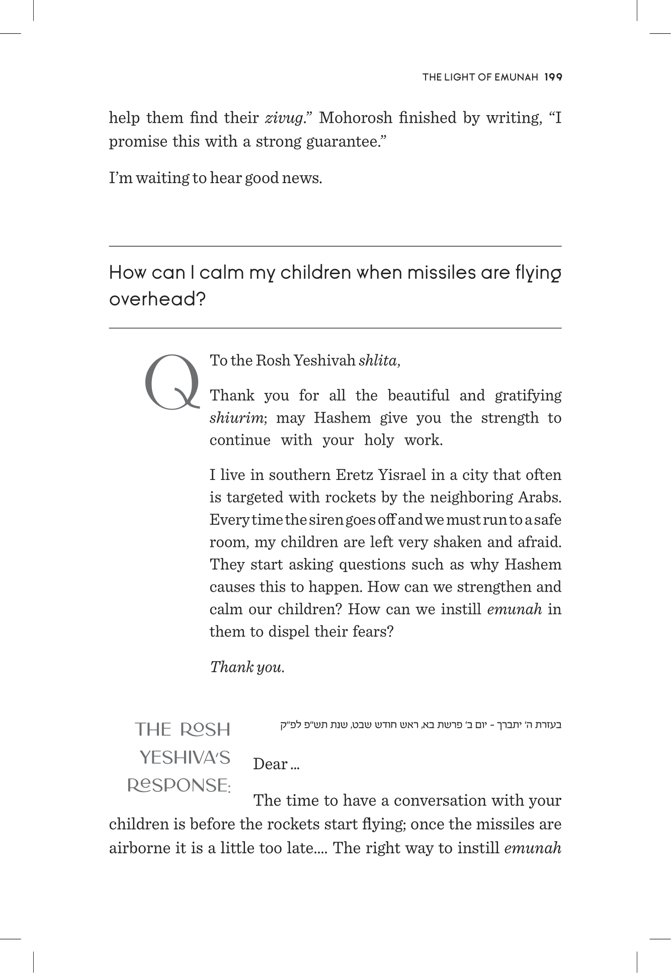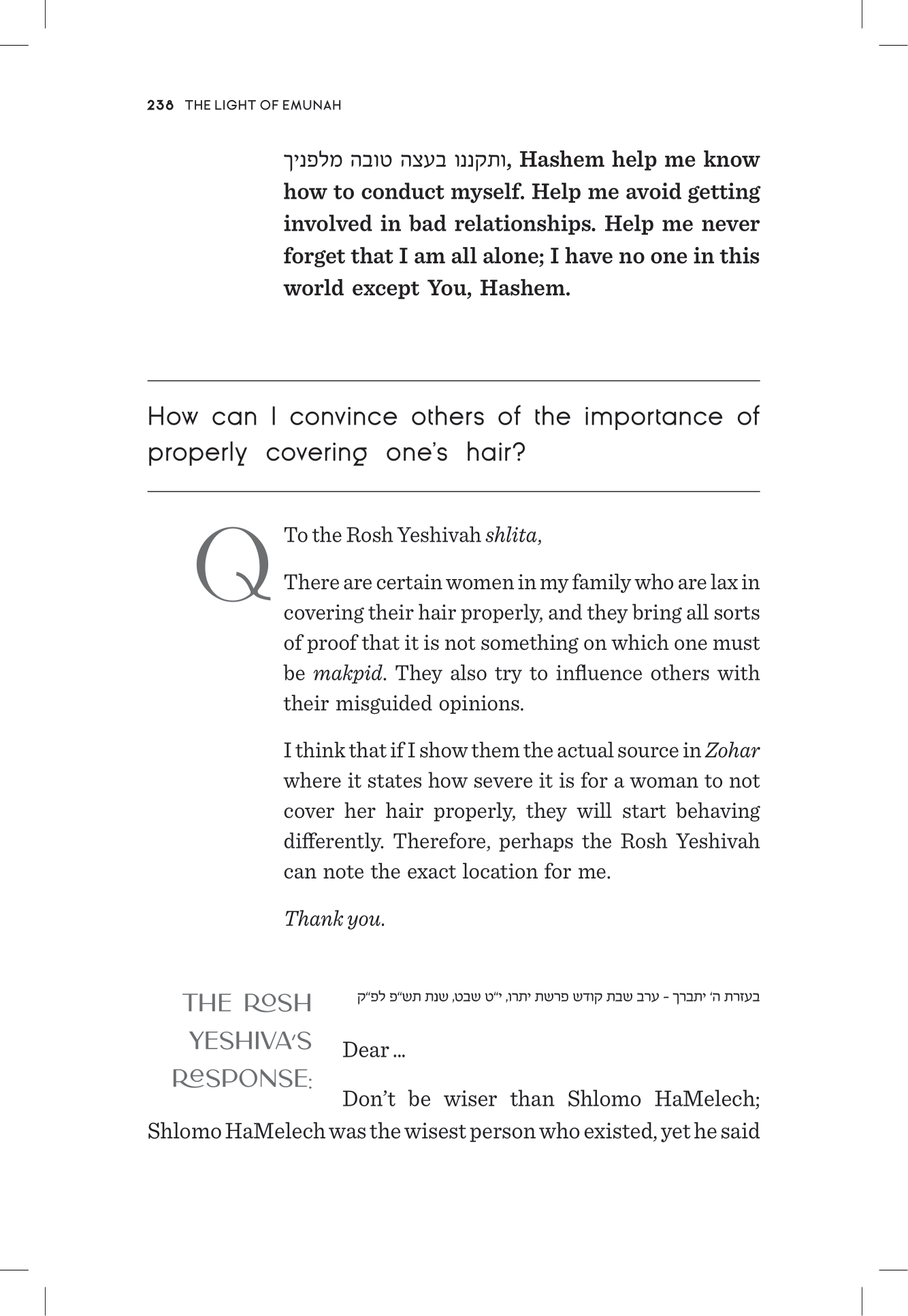 WRITTEN BY: HARAV REB YOEL ROTH SHLITA ROSH YESHIVAS TIFERES HATORAH